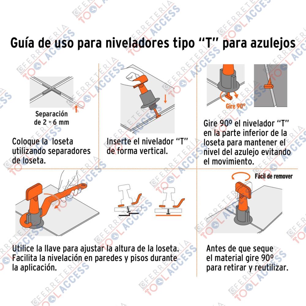• Facilitan la instalación evitando el movimiento del azulejo, ajustando la altura y sosteniendo bordes de manera uniforme