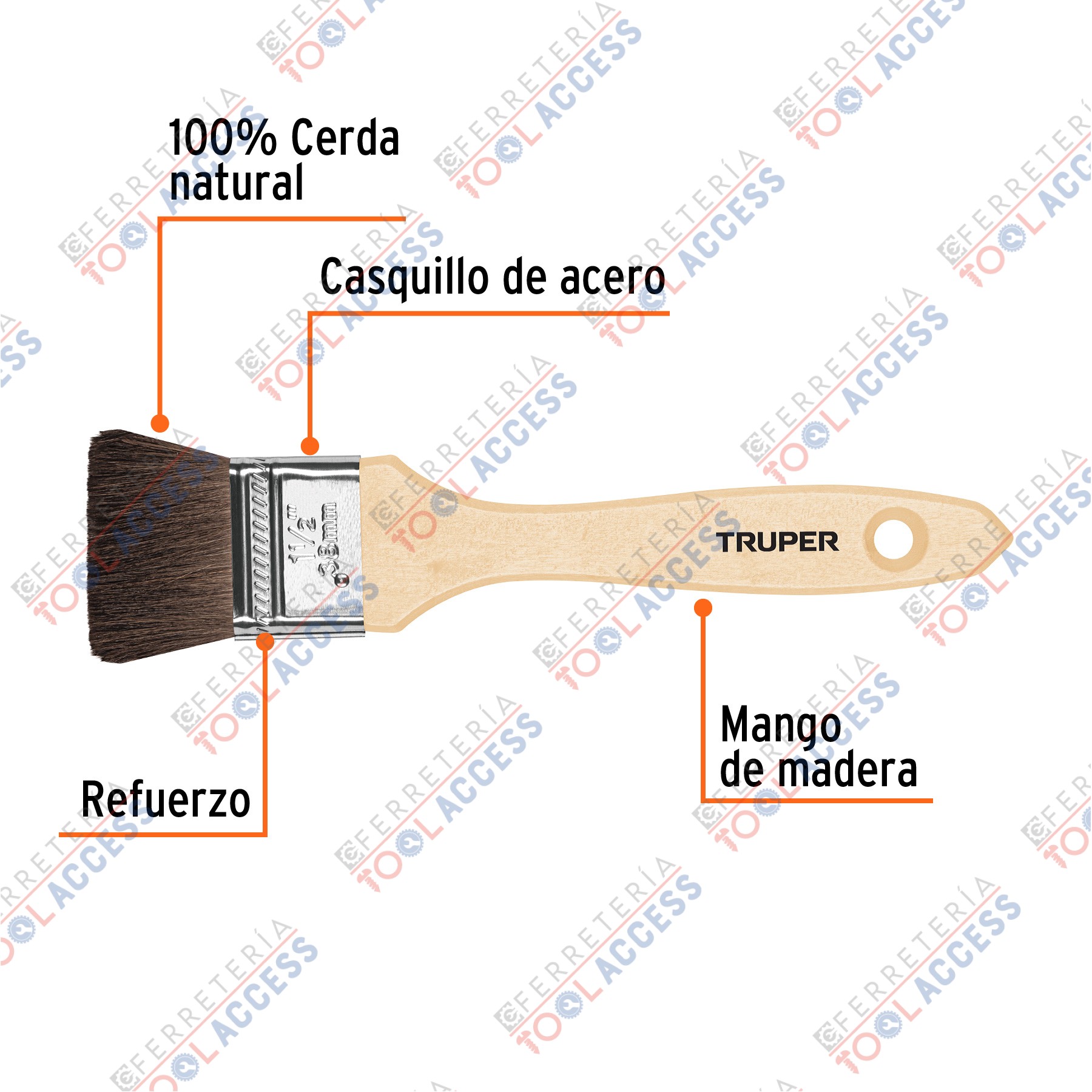 Brocha pelo de camello de 1-1/2″ con mango de madera, TRUPER