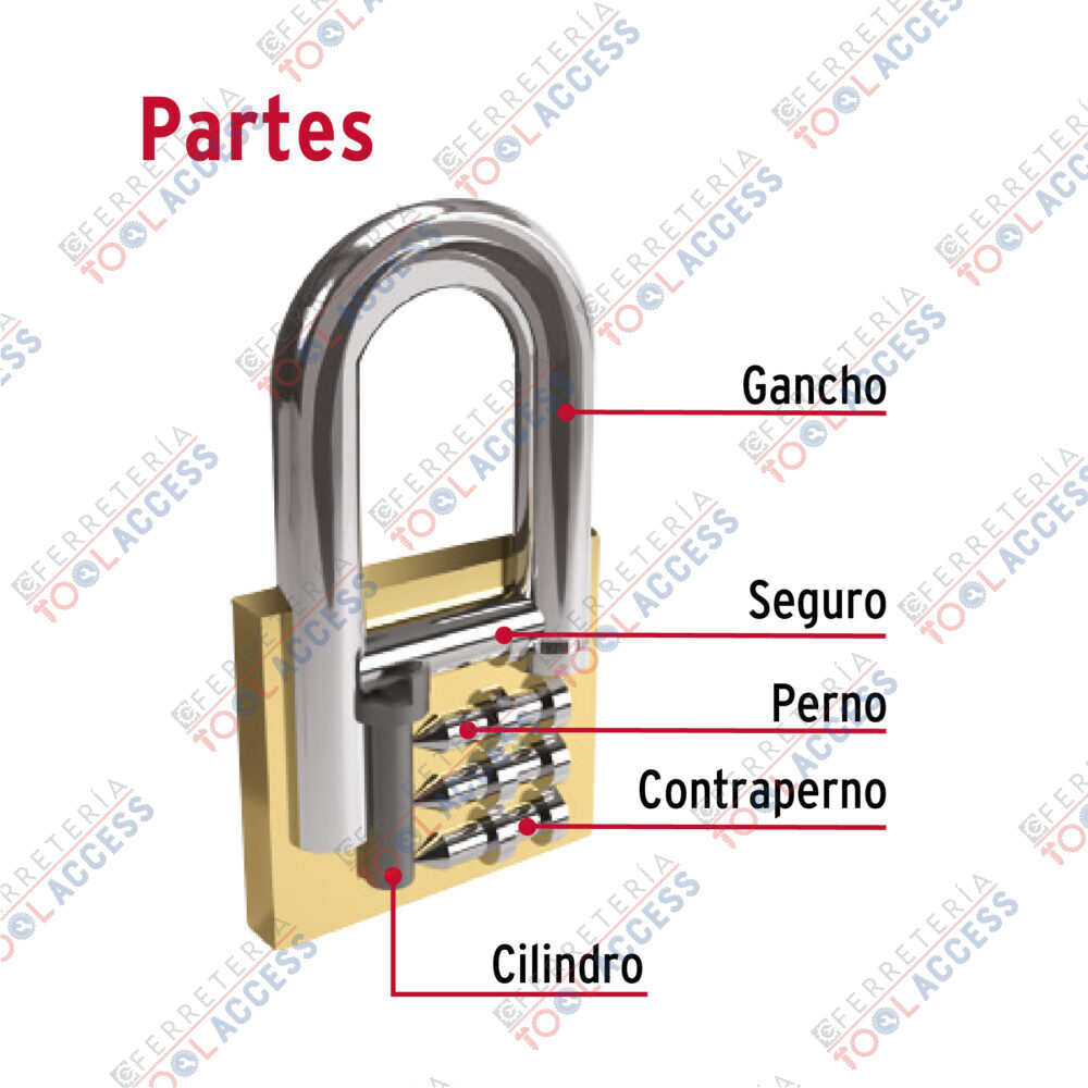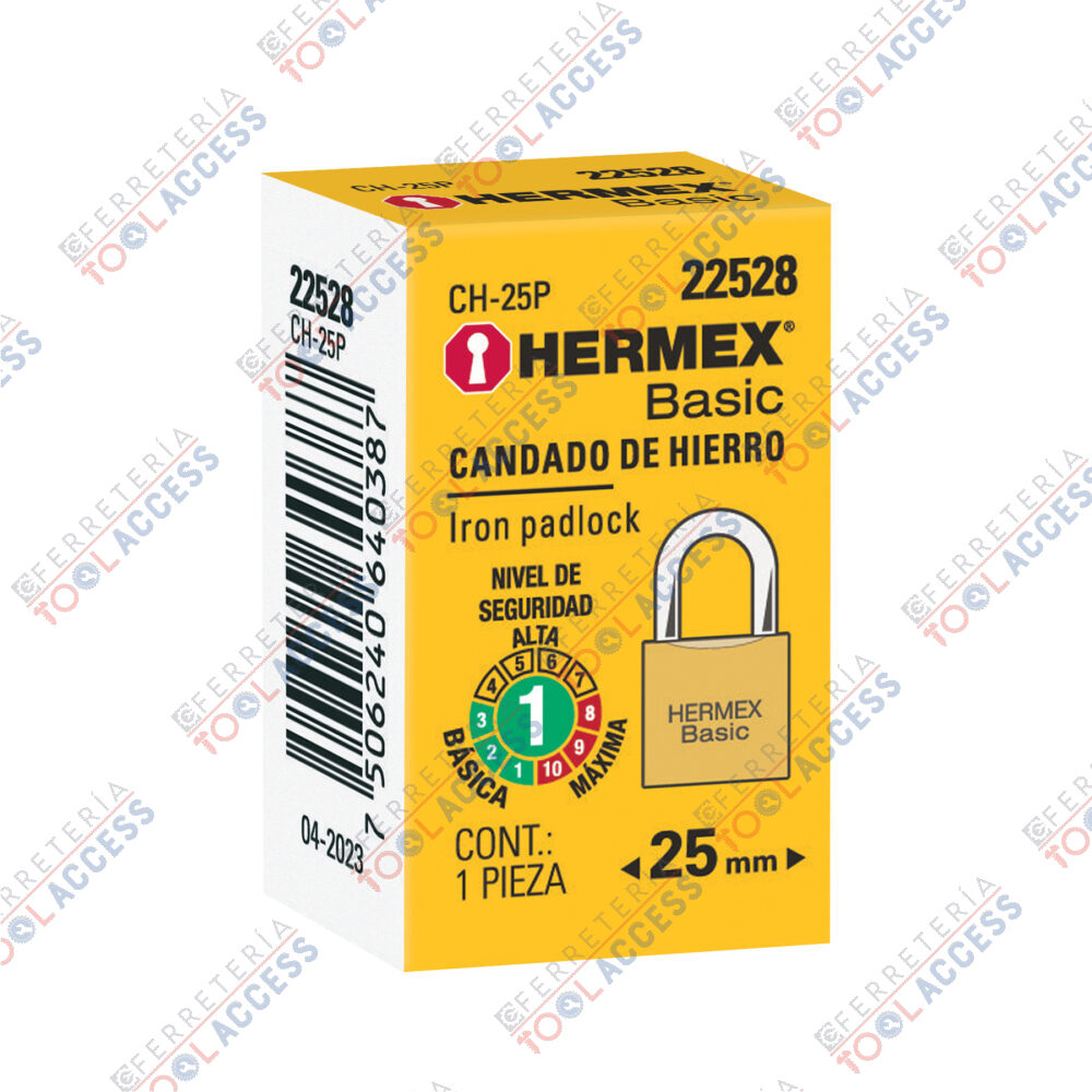Candado de hierro 25 mm, color latón, corto, caja, Hermex
