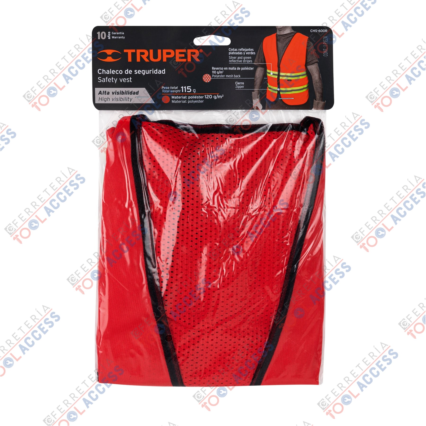 Chaleco de seguridad rojo alta visibilidad con cierre, Truper