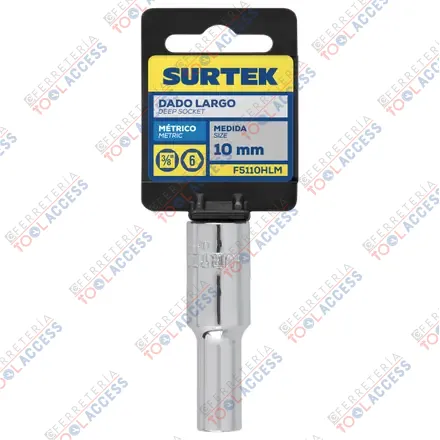 Dado largo cuadro de 3/8″, 6 puntas, métrico, 10mm, Surtek