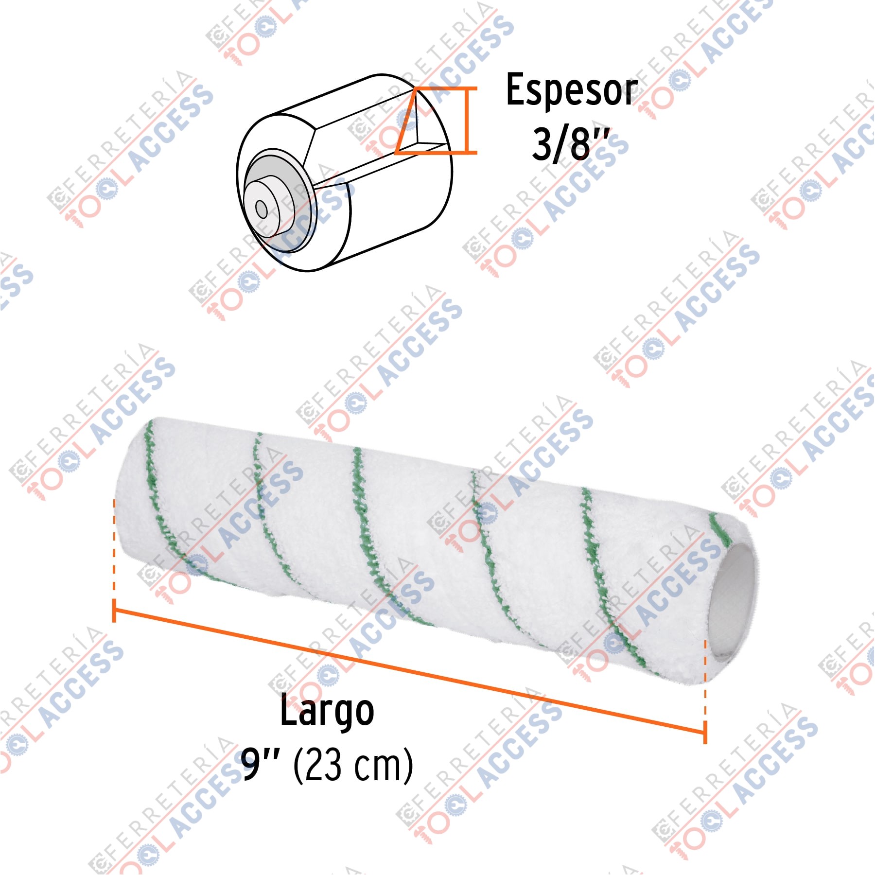 Felpa para rodillo 9″x3/8″ de microfibra, sup. poco rugosas, Truper