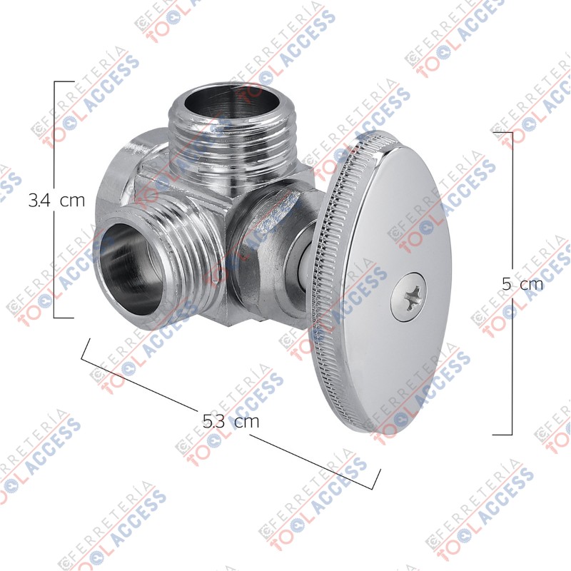 - Fabricada en latón. 1/2″ x 1/2″ x 1/2″. Ideal para conectar 2 mangueras y manejar la misma temperatura. Se puede conectar a bidet.