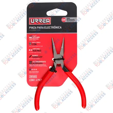 Pinza para electricista con mango rubber grip con resorte punta cónica lisa de 4-3/4″, Urrea
