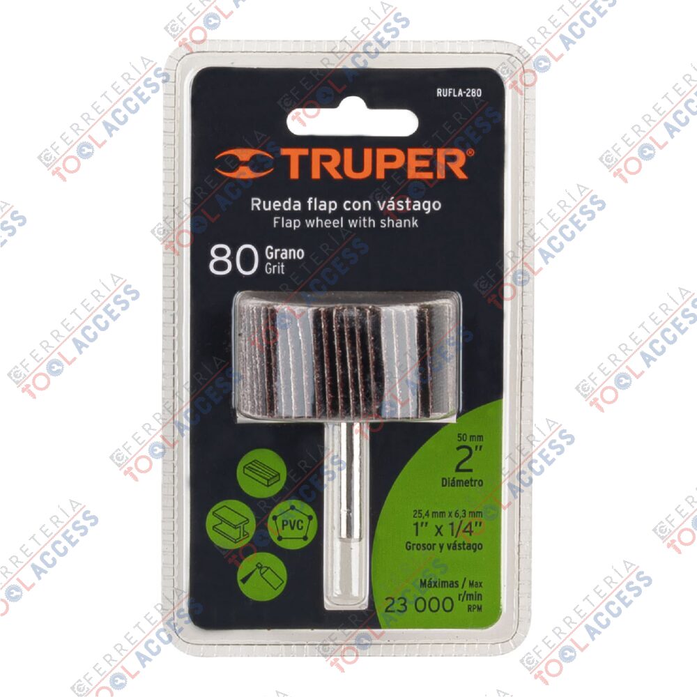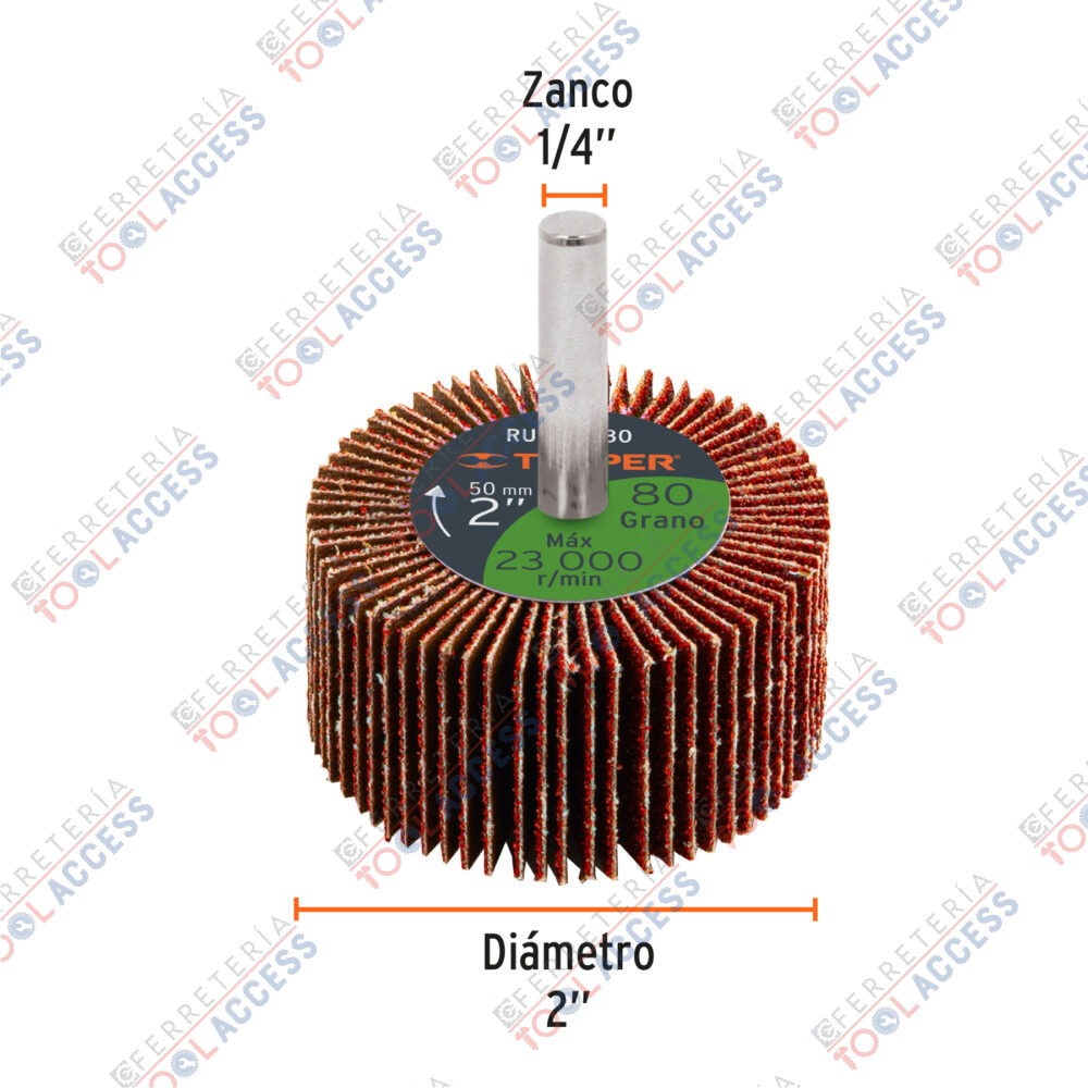 Rueda flap de 2″, grano 80, TRUPER