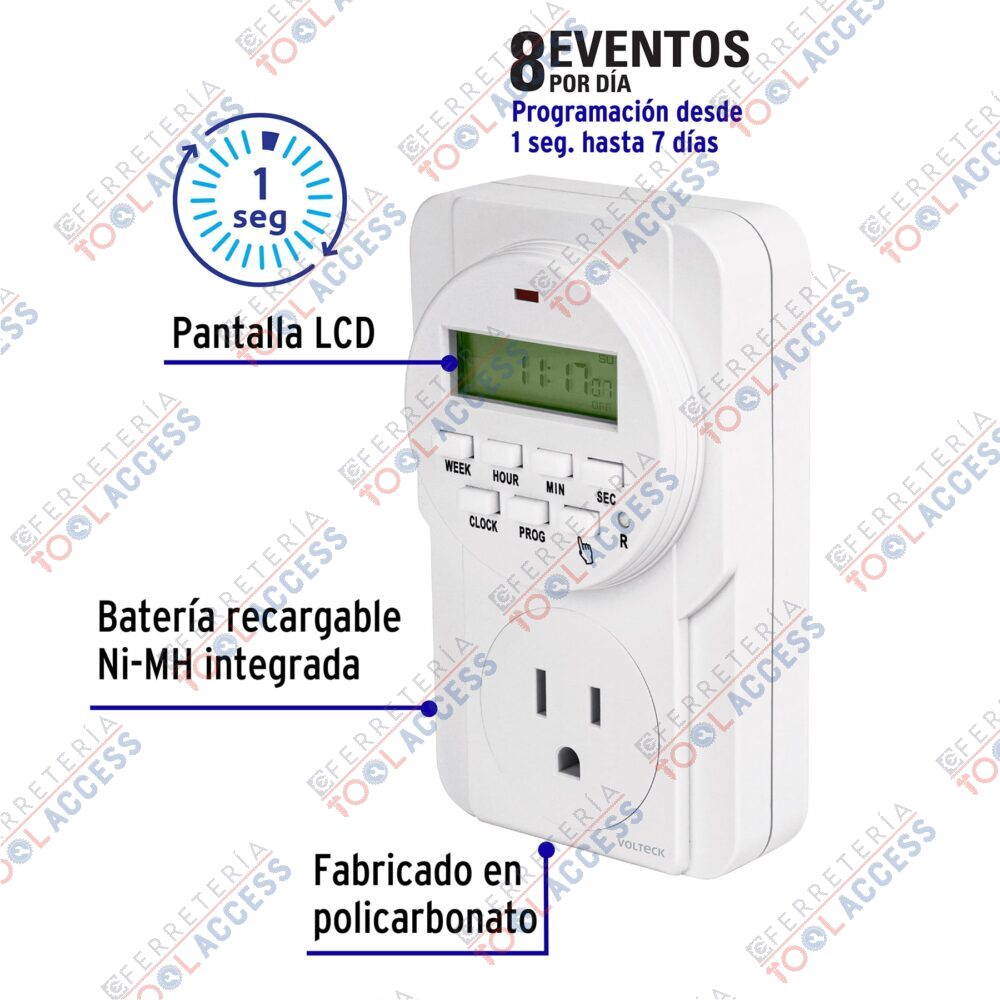 • Permite programar hasta 8 eventos por día, programación desde 1 min. hasta 7 días